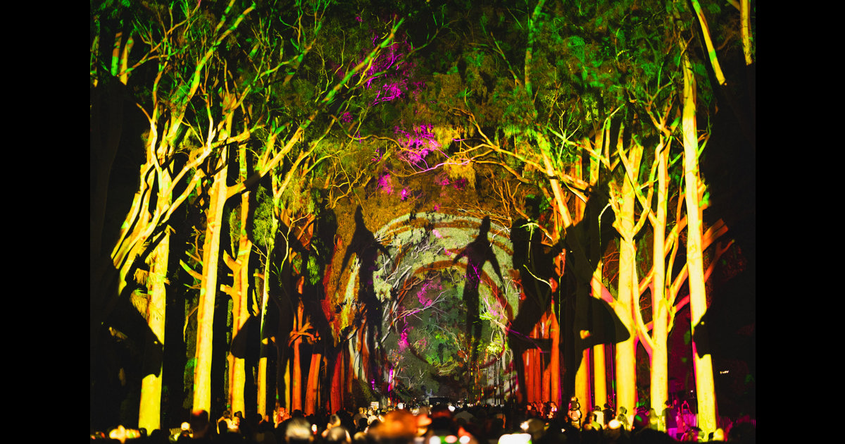 Audiences took an immersive after-dark walk through a tunnel of wonder along Fraser Avenue and into the park as stories of caring for Country came to spectacular life in this landmark melding of culture, science, cutting-edge technology and breathtaking artistry. Through spectacular high-tech light projections, animation, sound, and song, event-goers discovered stories of regrowth and new life as fire flickered, rain descended, plants emerged and bloomed, and giant birds and animals roamed all around and up above in the majestic treetops.